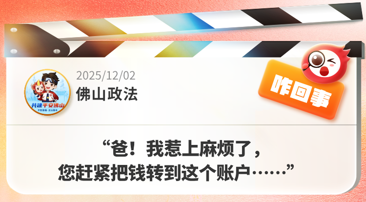 “爸!我惹上缺乏了,您马上把钱转到这个账户……”茕居老东谈主片刻接到“犬子”的求救电话,他会遴荐坐窝转钱吗?快转发“水乳交融一家东谈主”群,测测家里父老的防诈意志>>@佛山政法