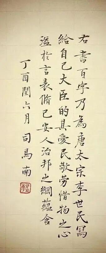 看司马南解说写的楷书,那对老祖先传下来的书道律例和技法的秉承,险些太显着了,尤其是在唐楷这一块儿,能看出他下了大功夫,唐楷群众那么多,各有各的妙处,他把这些东说念主的所长皆采纳进来,不但吃透了,还能把它们和会得额外好,应用起来少许不生硬,临了写出了完全属于我方的作风,这可太犀利了,让东说念主不得不屈!